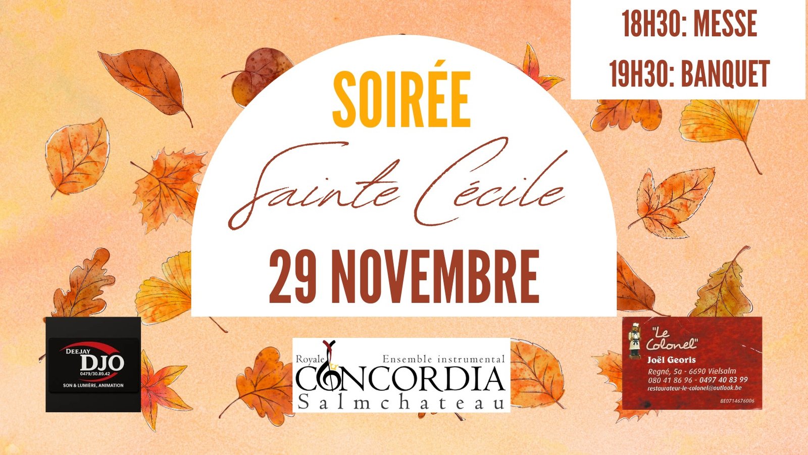 Le Comité et les musicien.ne.s de L’Ensemble Instrumental “Royale Concordia” de Salmchâteau ont le plaisir de vous inviter à participer à la célébration de leur sainte patronne, Sainte Cécile.